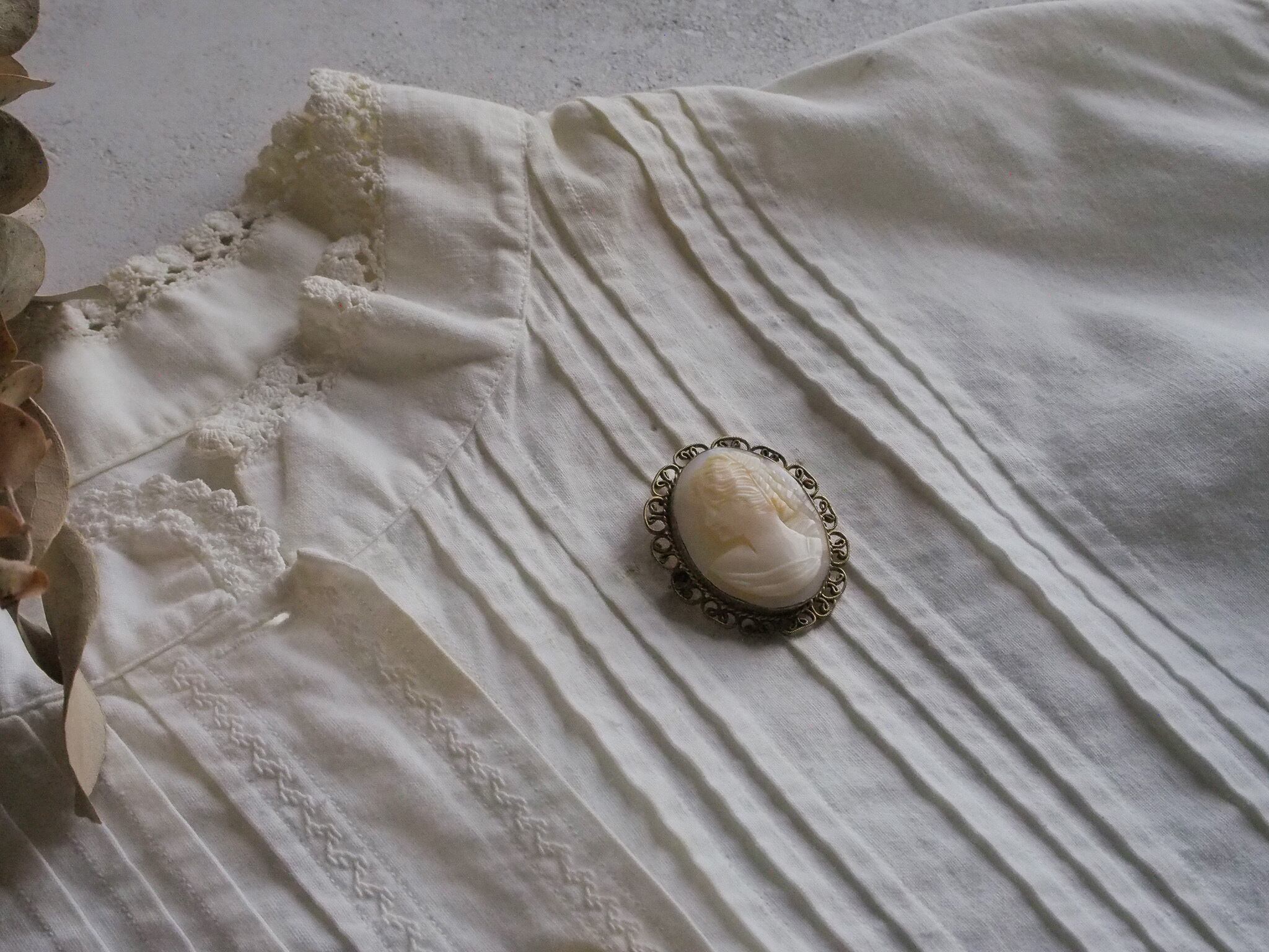 透き通るような乳白色のカメオブローチ