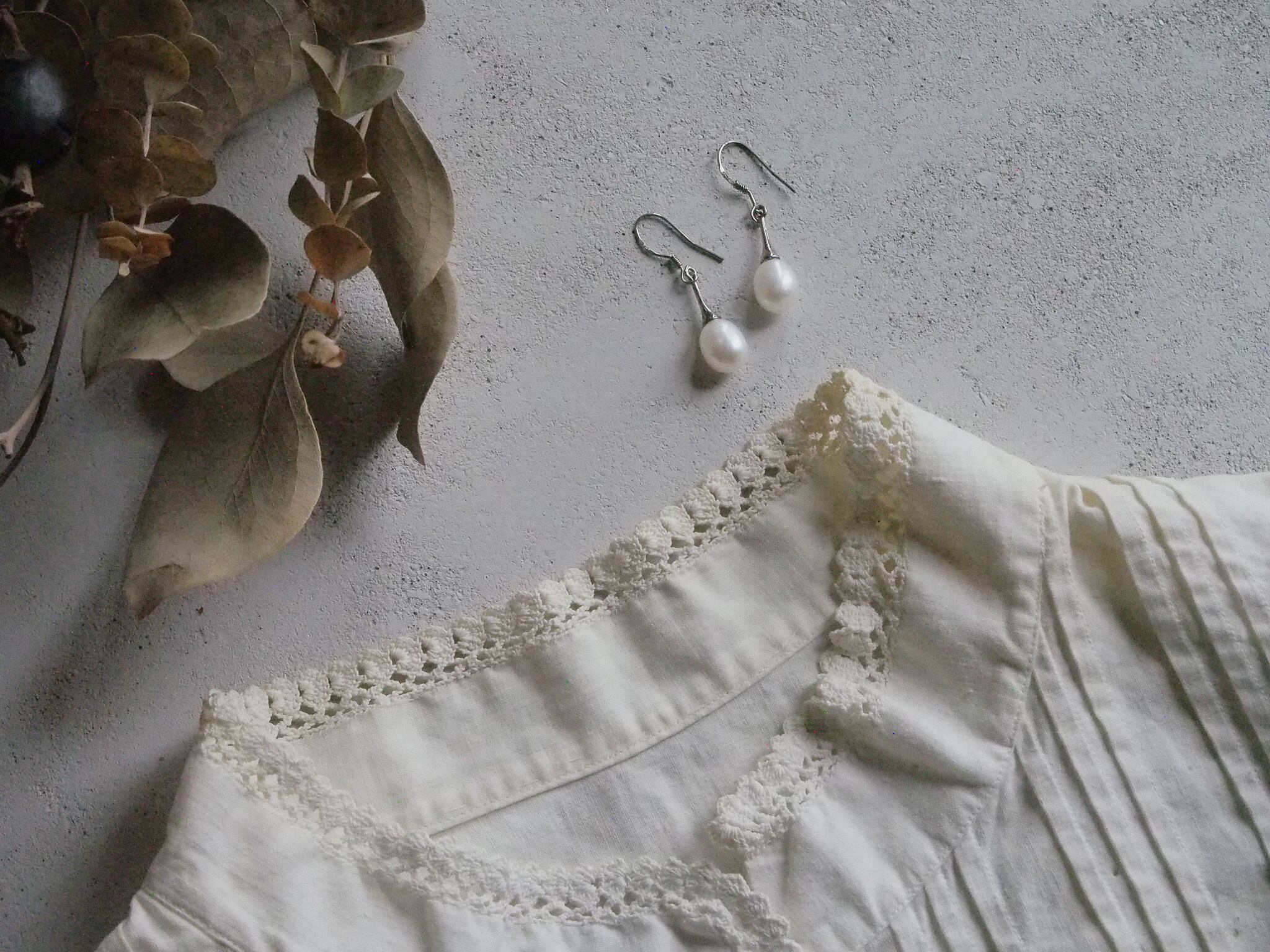 SOLD OUT 白く発光するような淡水パールとシルバーのヴィンテージピアス。