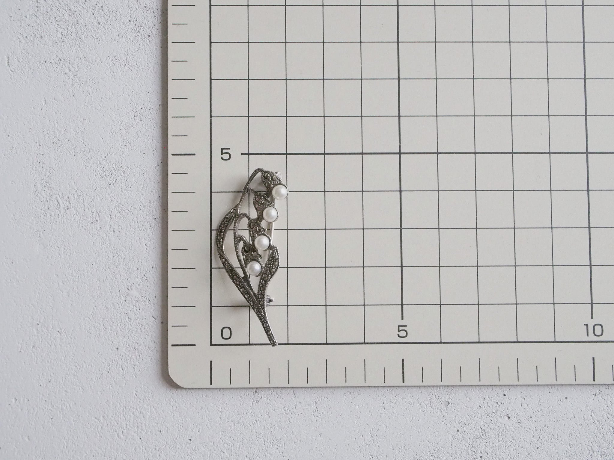 【素 材】シルバー(シルバー925を示す925の刻印あり)、マーカサイト、フォーパール(イミテーションパール)