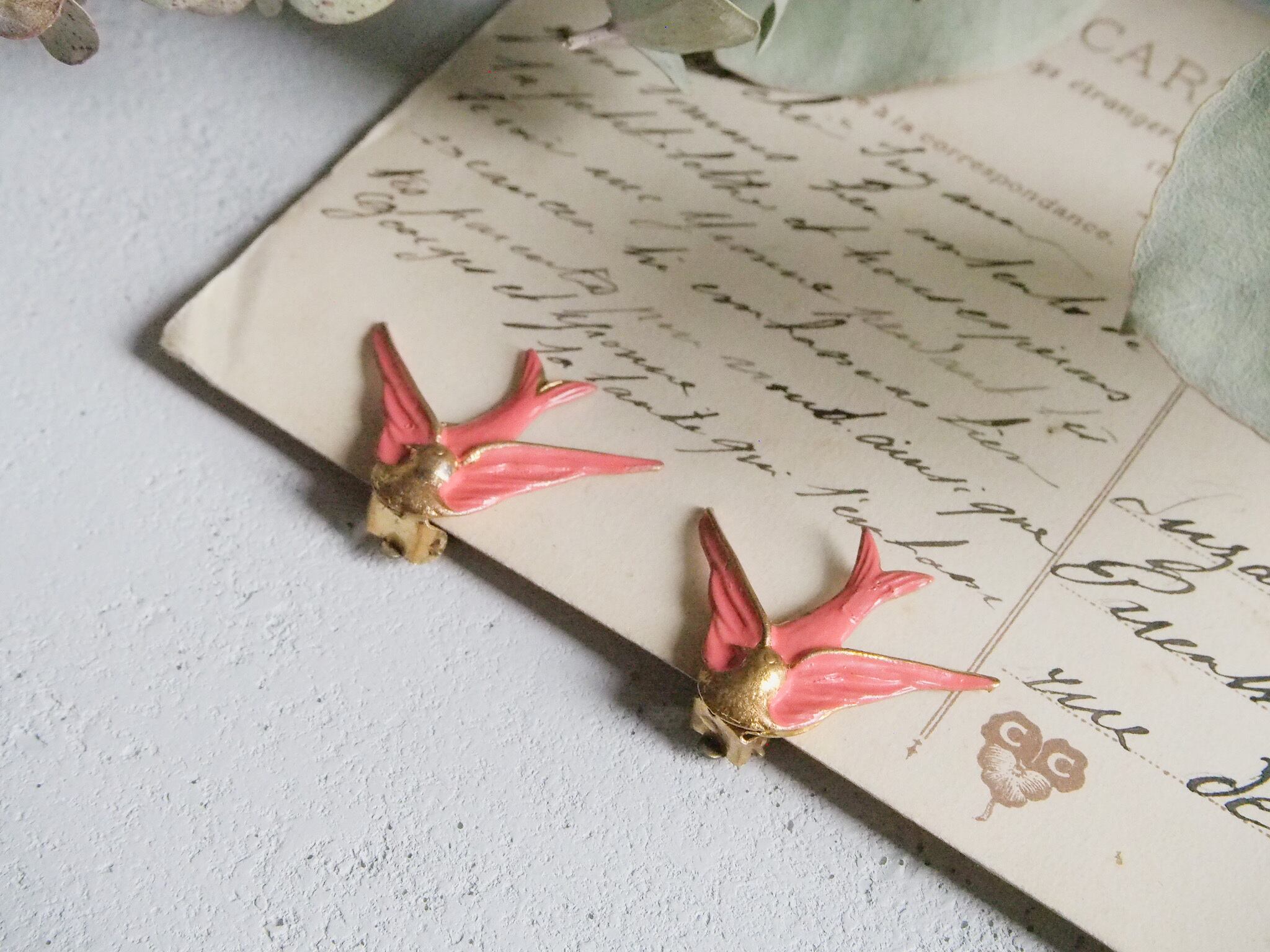 柔らかなピンク色が映える鳥のイヤリング(イヤクリップ)です。