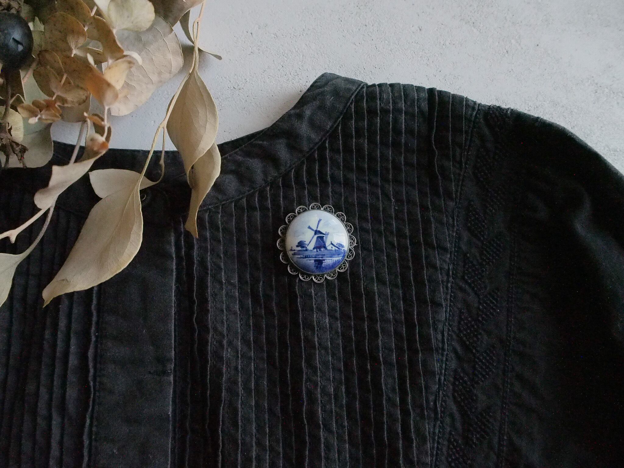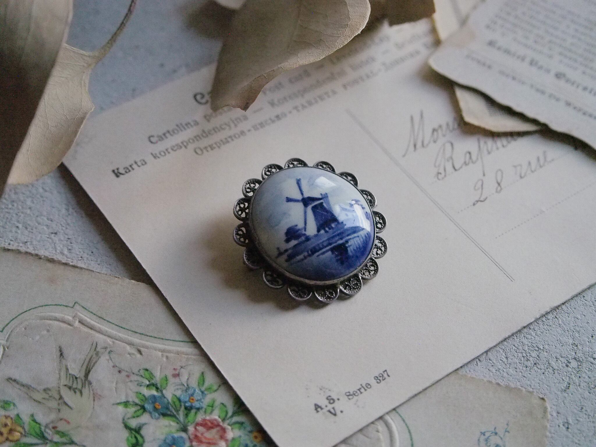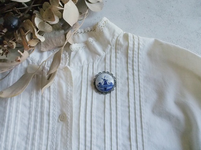 SOLD OUT オランダのデルフトで作られた陶器のブローチです。