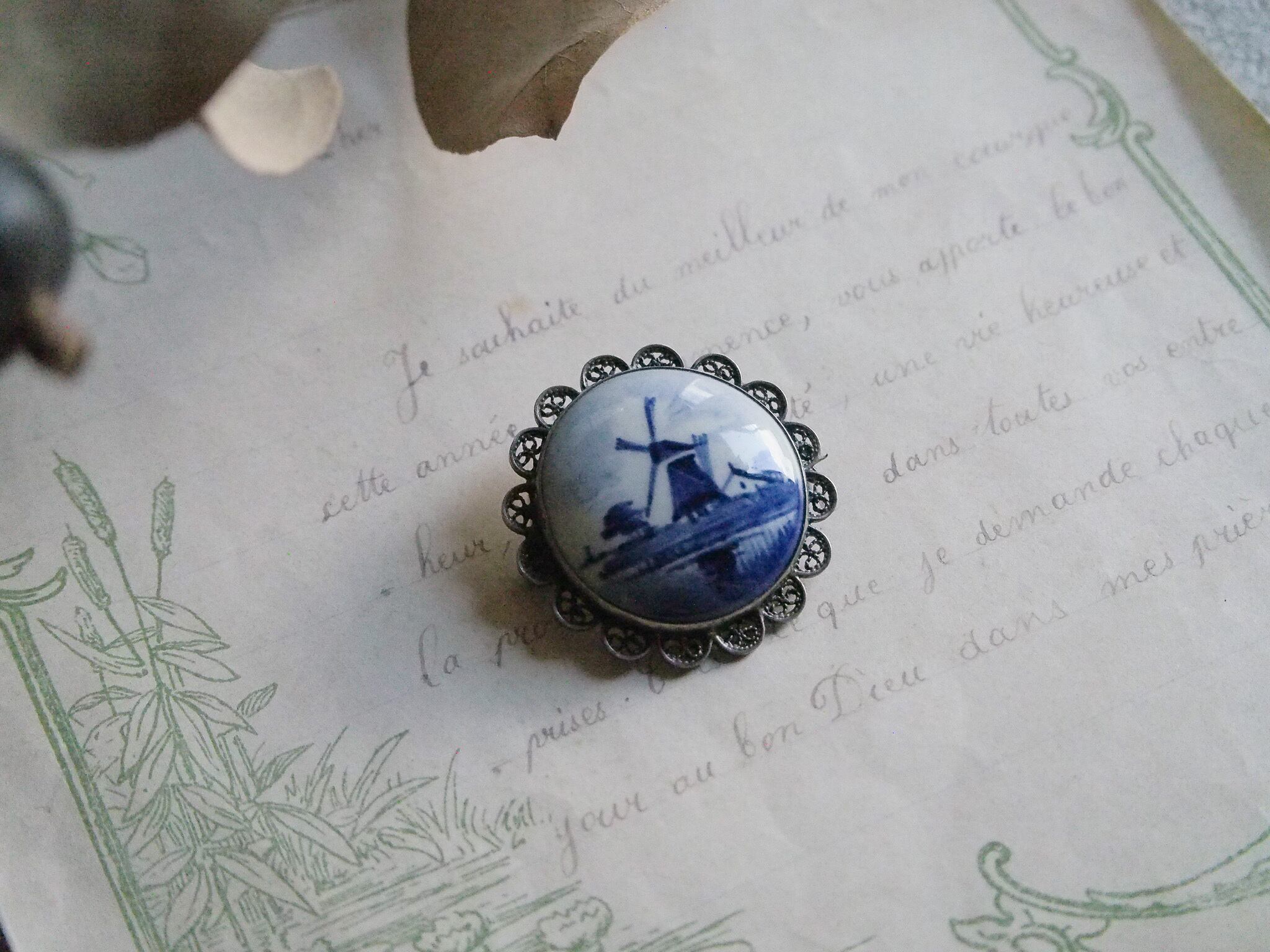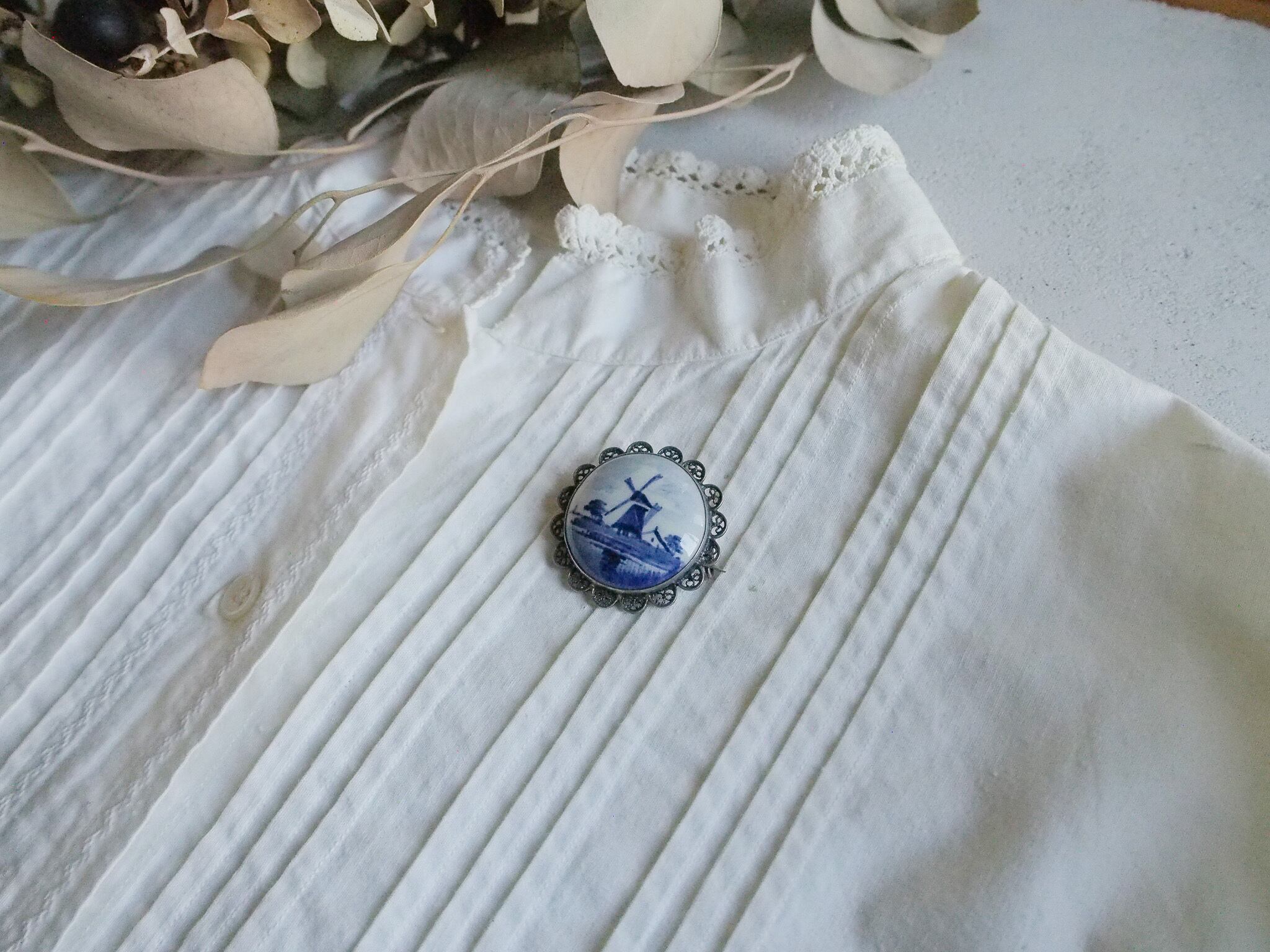 オランダデルフトの陶器ブローチ
