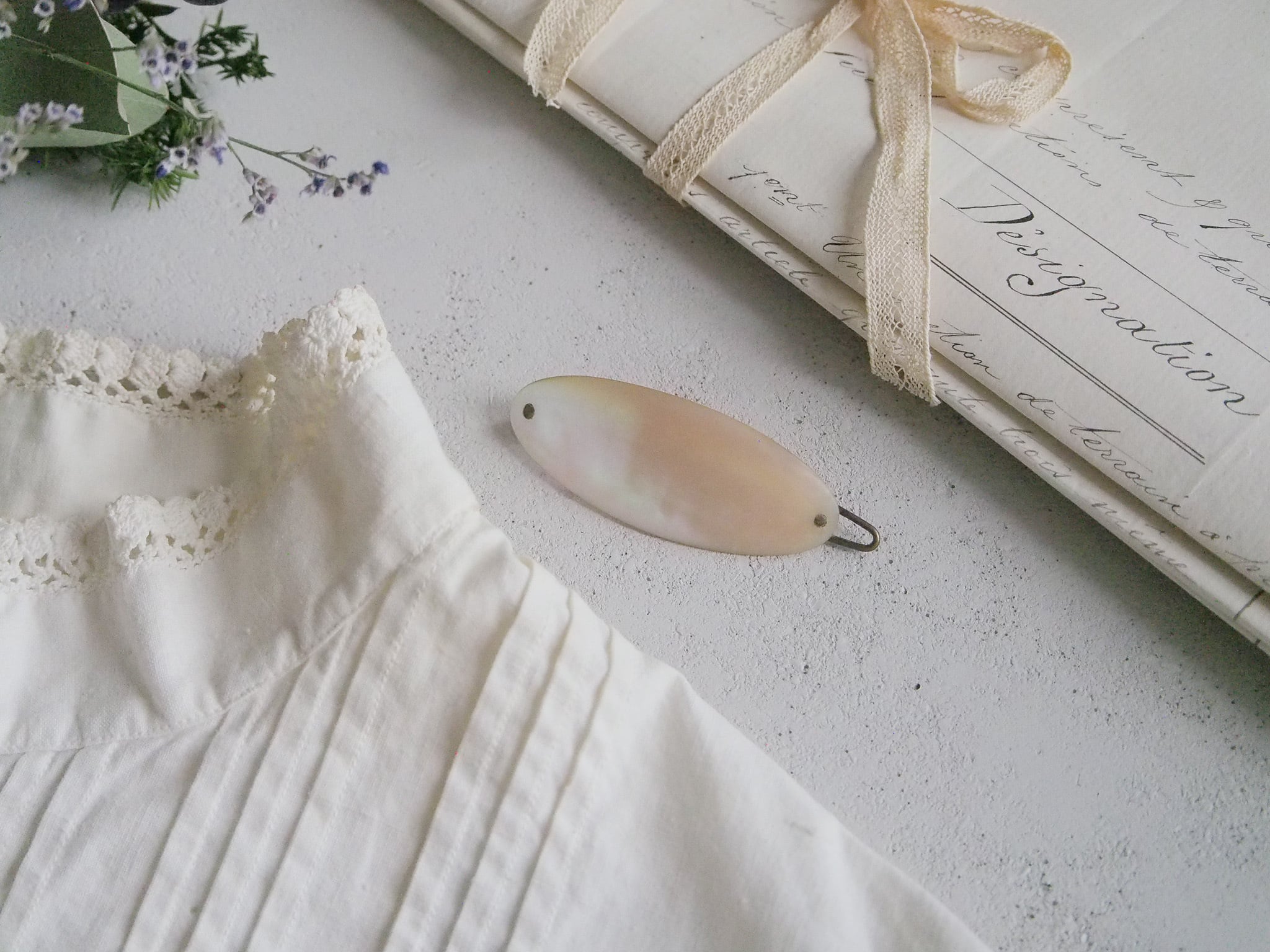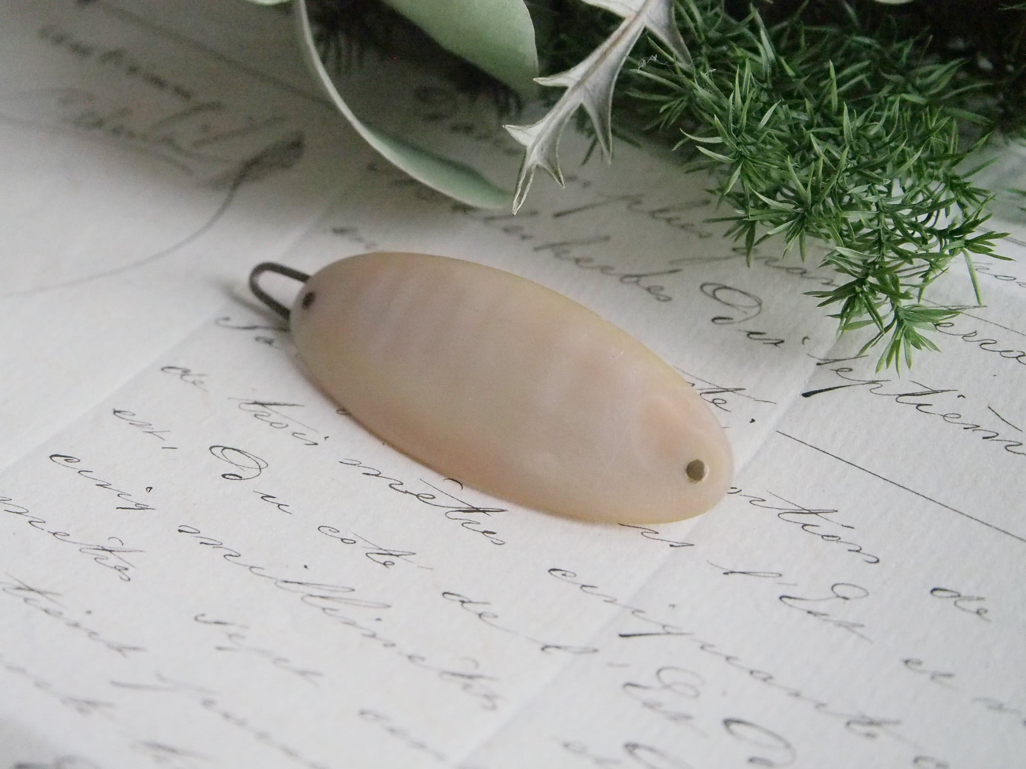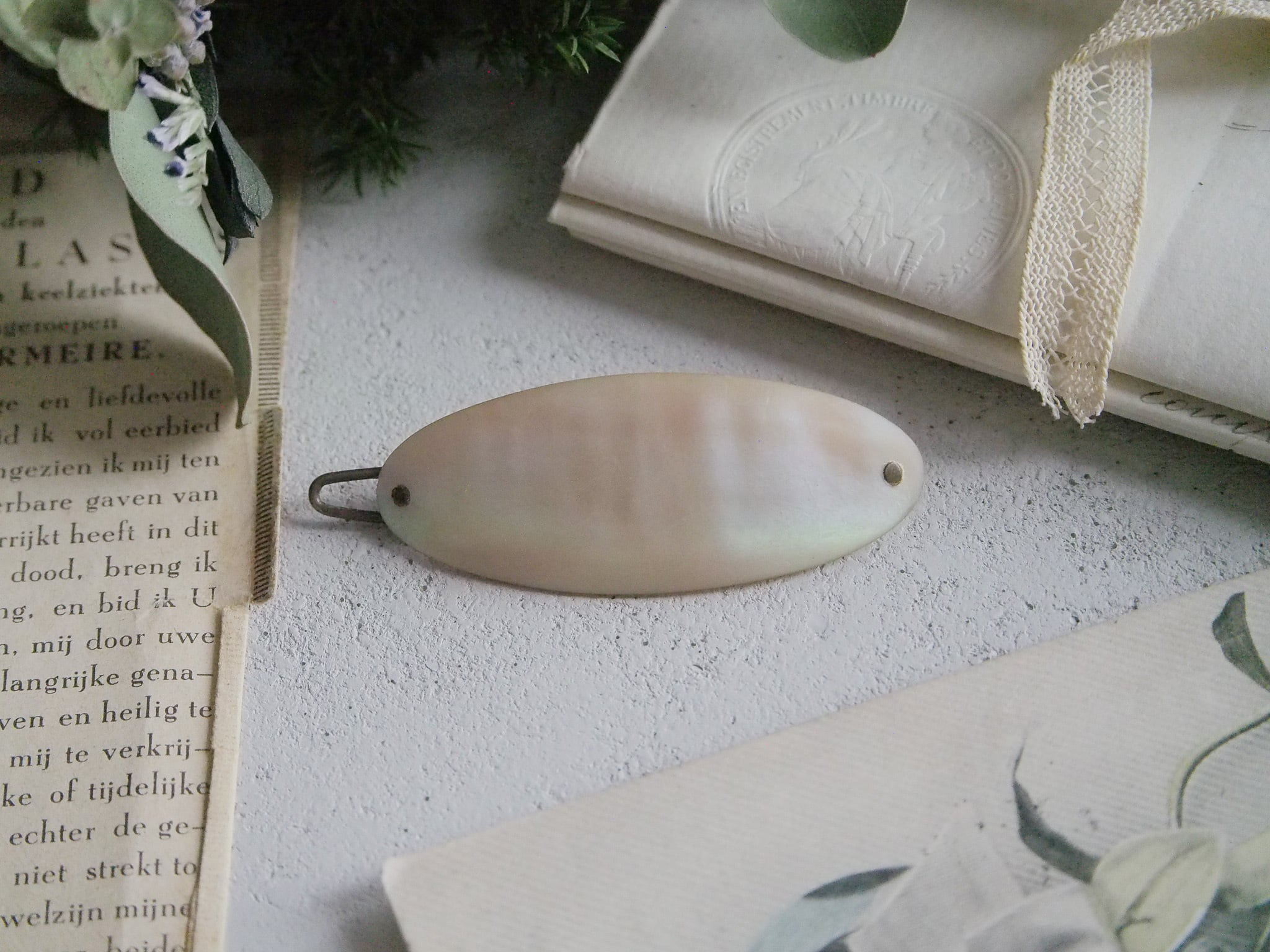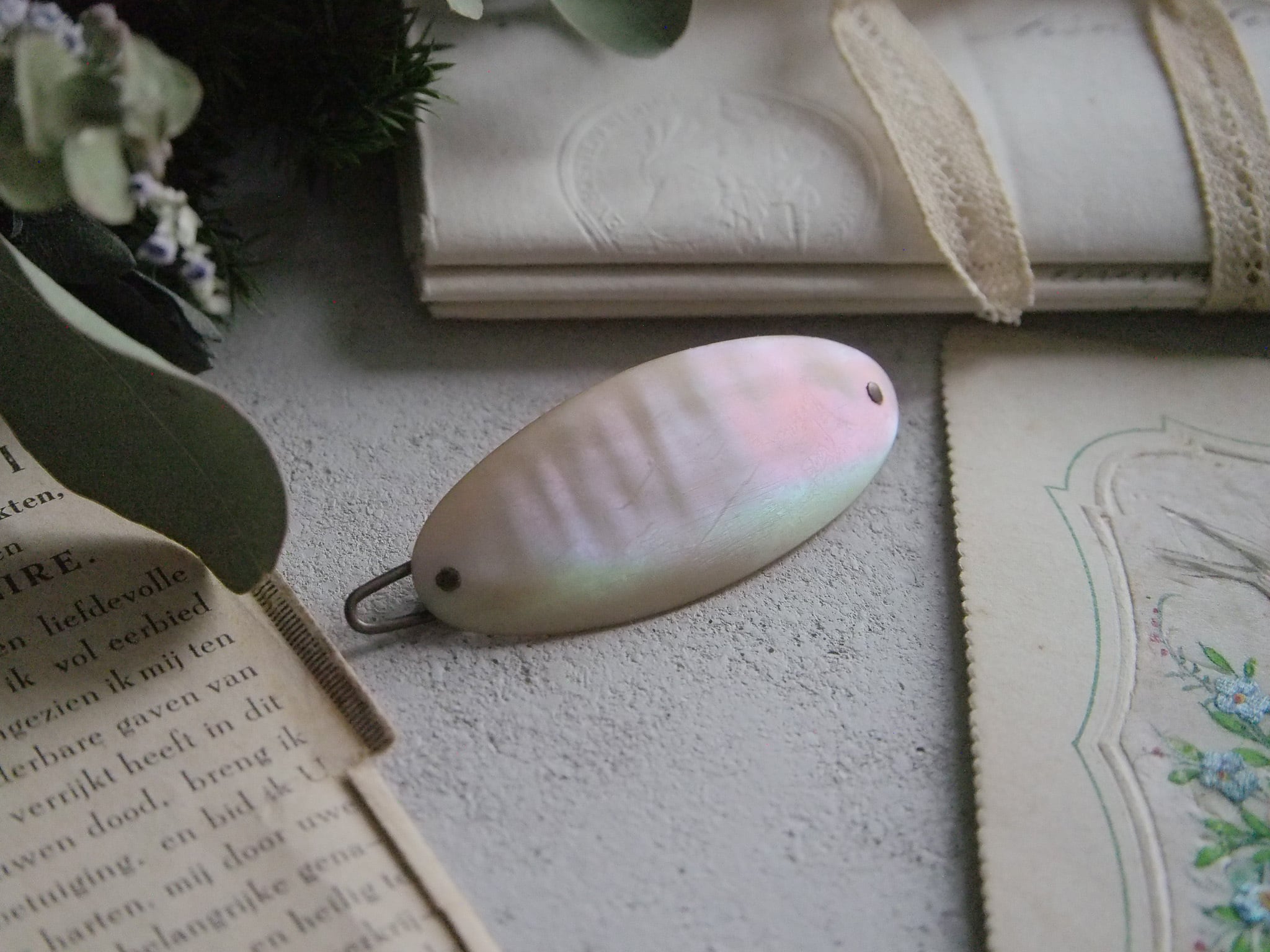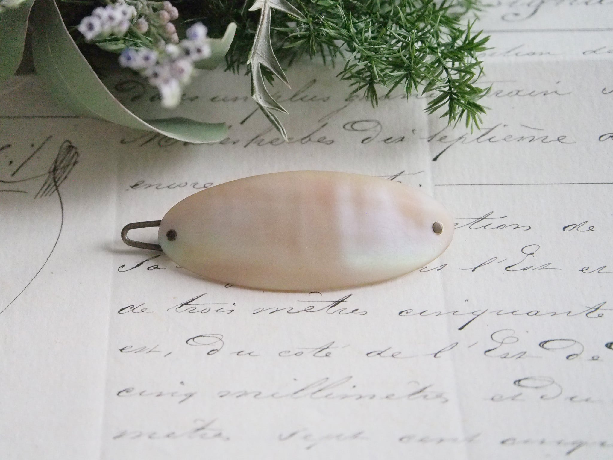 めずらしいマザーオブパールの髪留めです。
