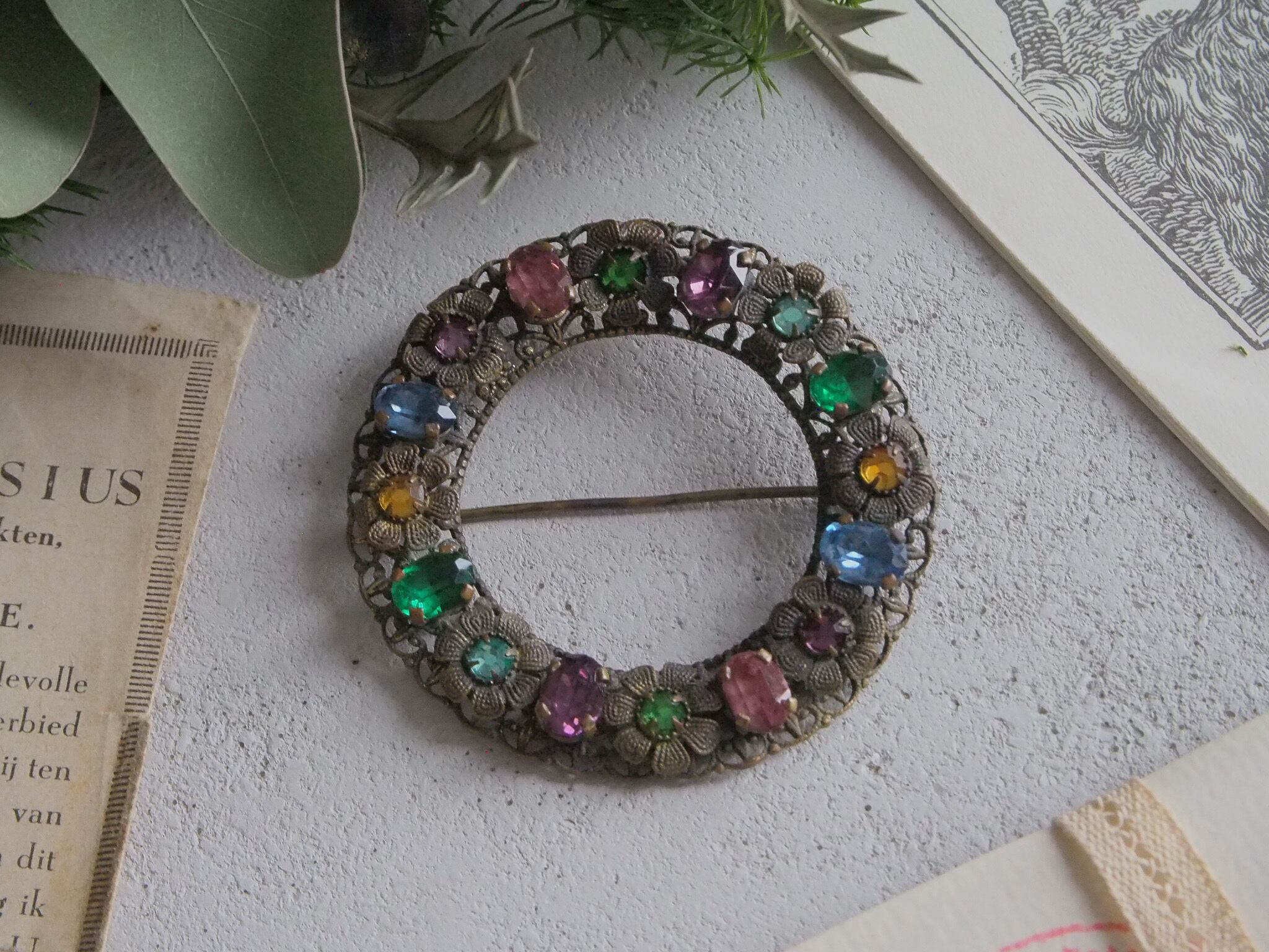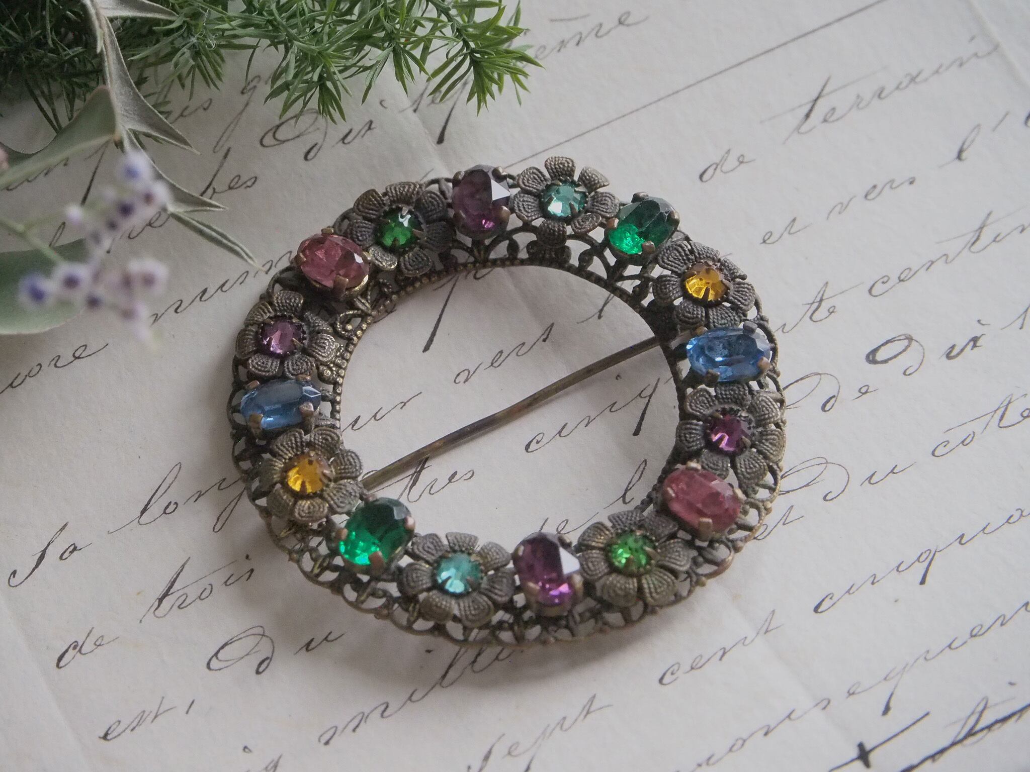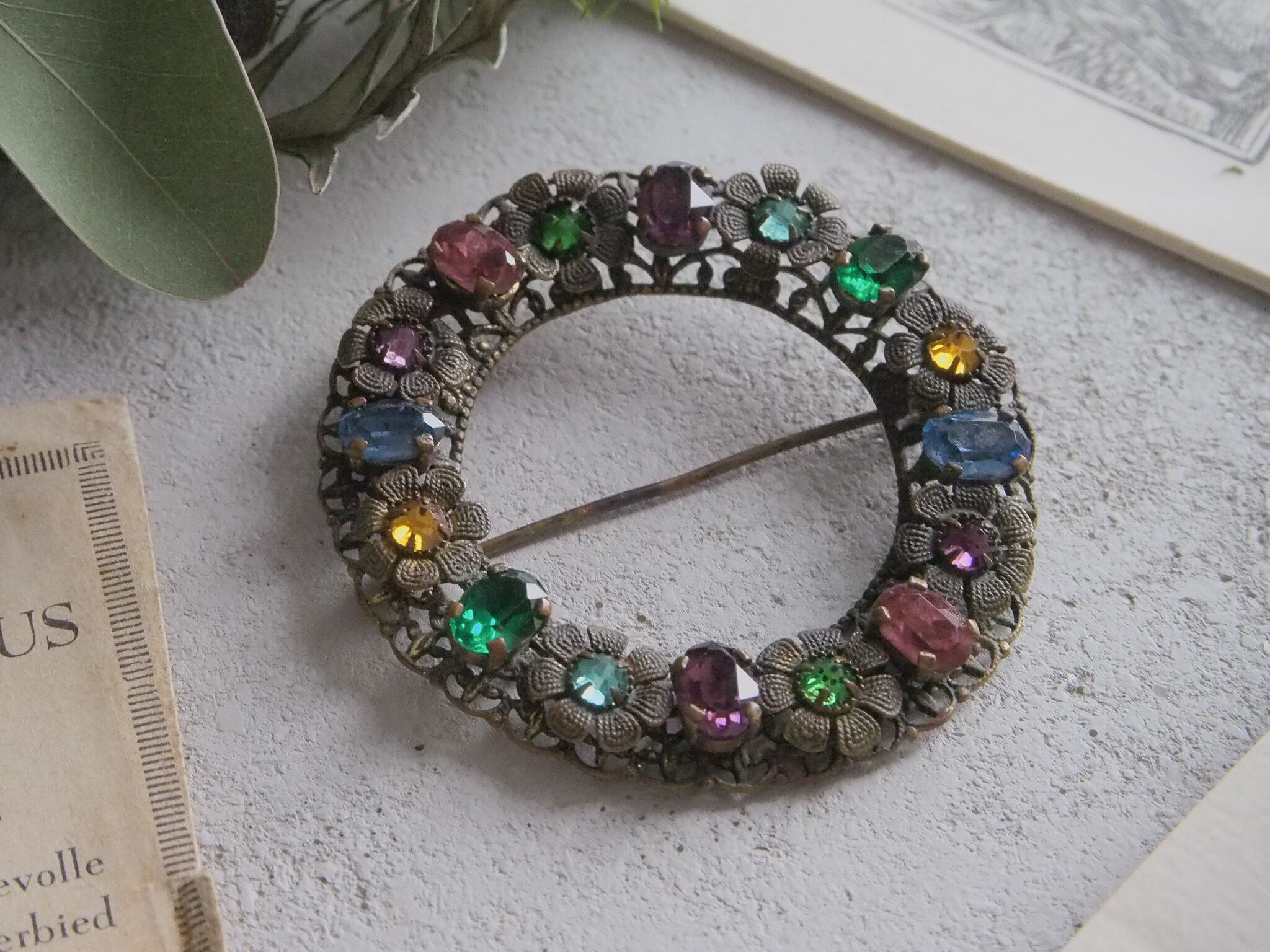 アンティークな雰囲気が漂う、チェコのガラスブローチです。