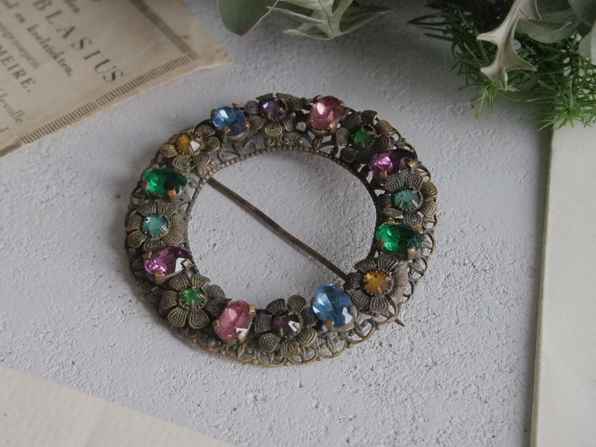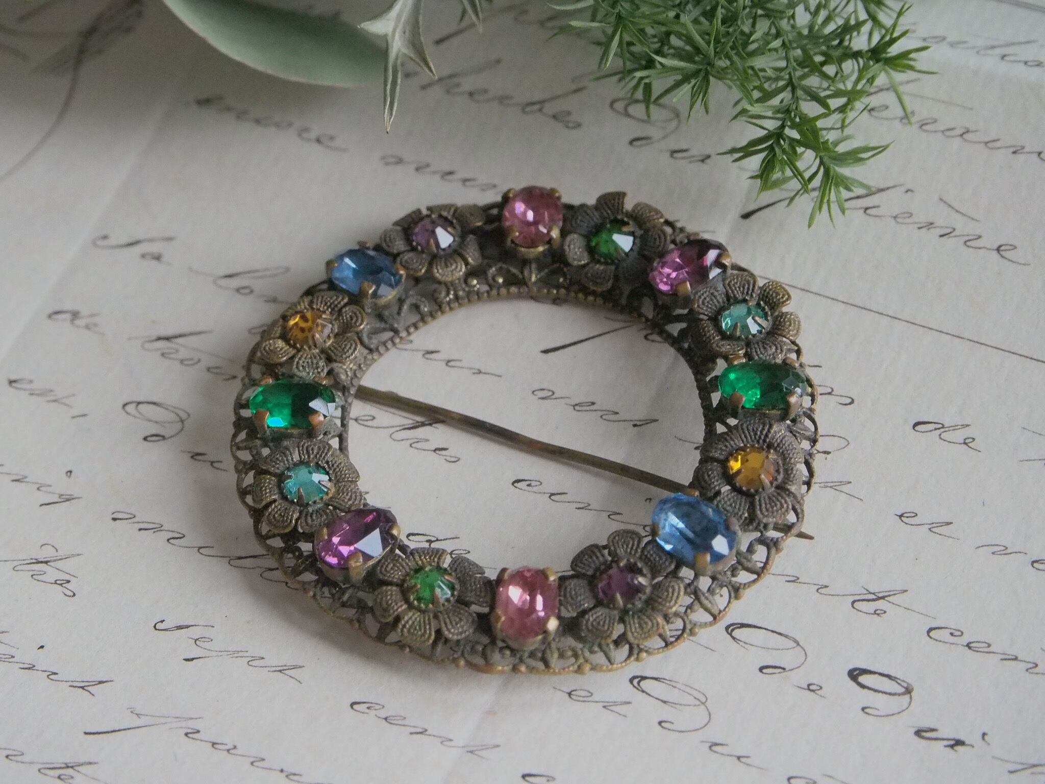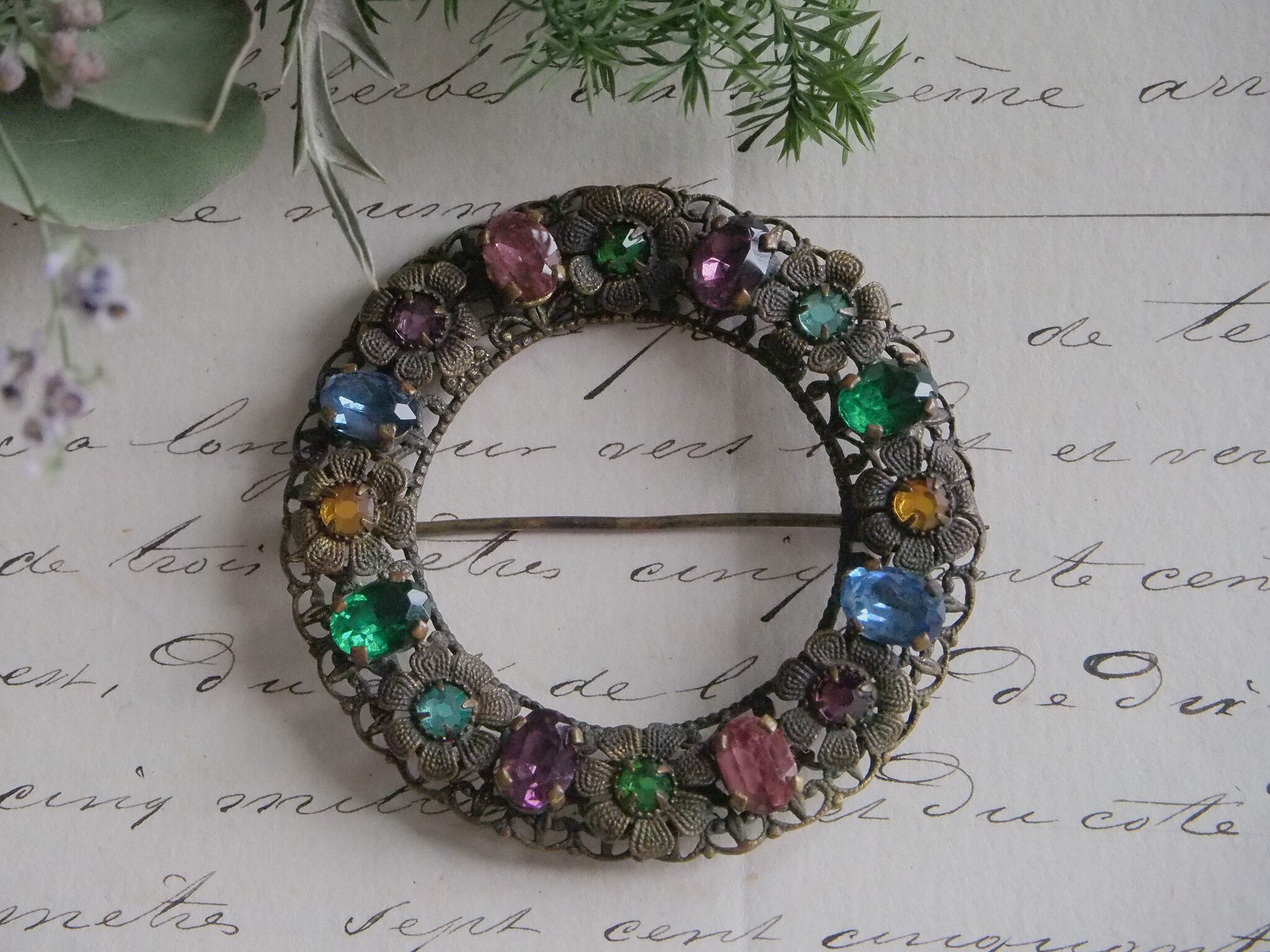 アンティークな雰囲気が漂う、チェコのガラスブローチです。