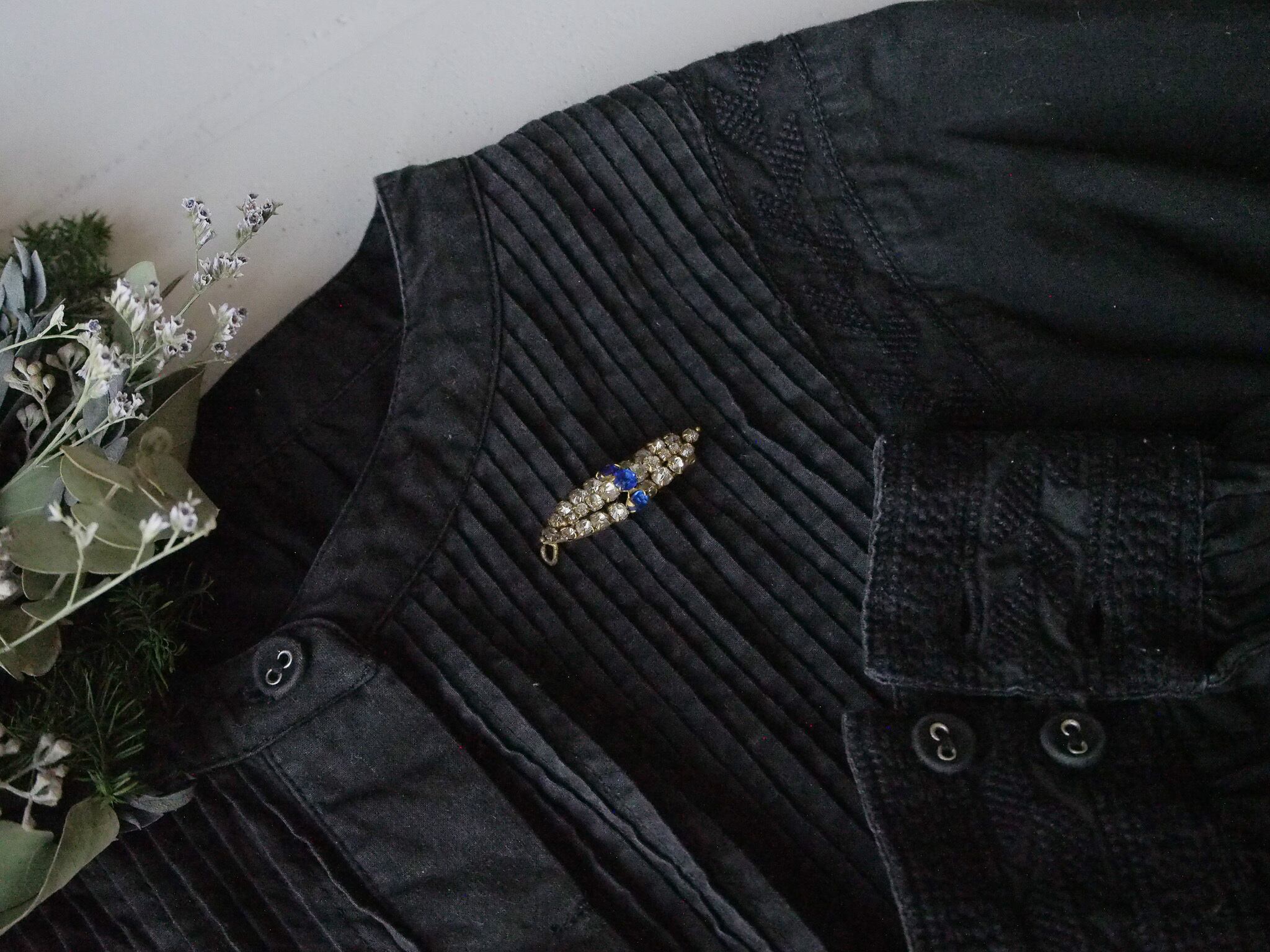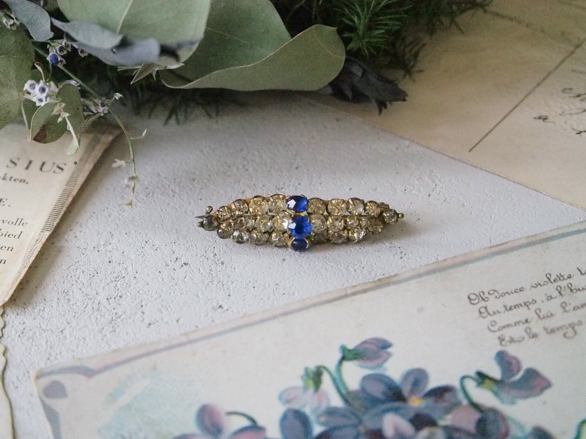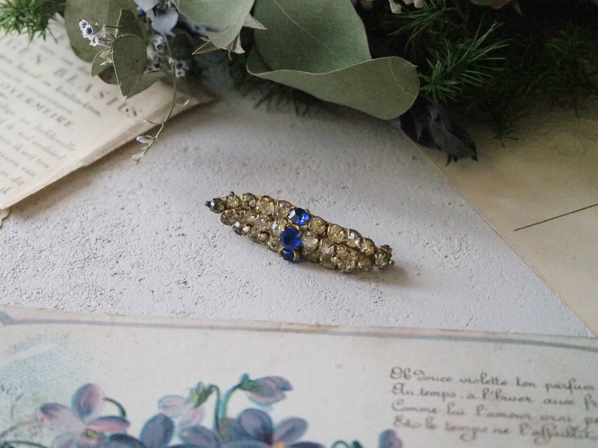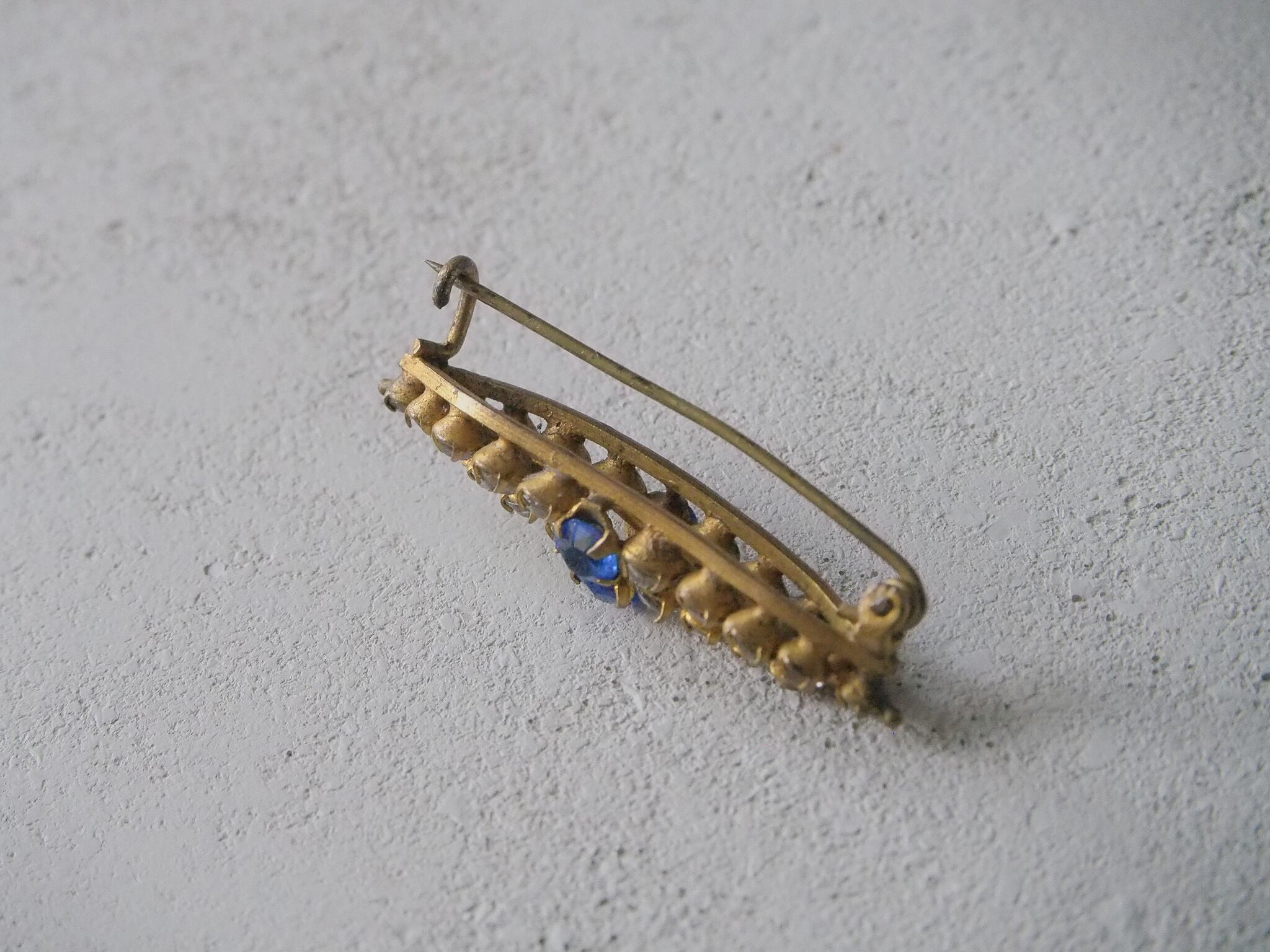 SOLD OUT 中央の青いガラスがアクセントのアンティークブローチです。
