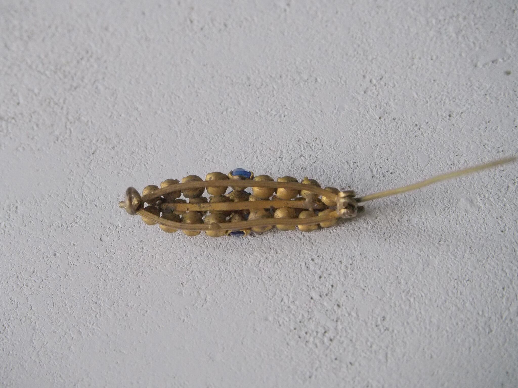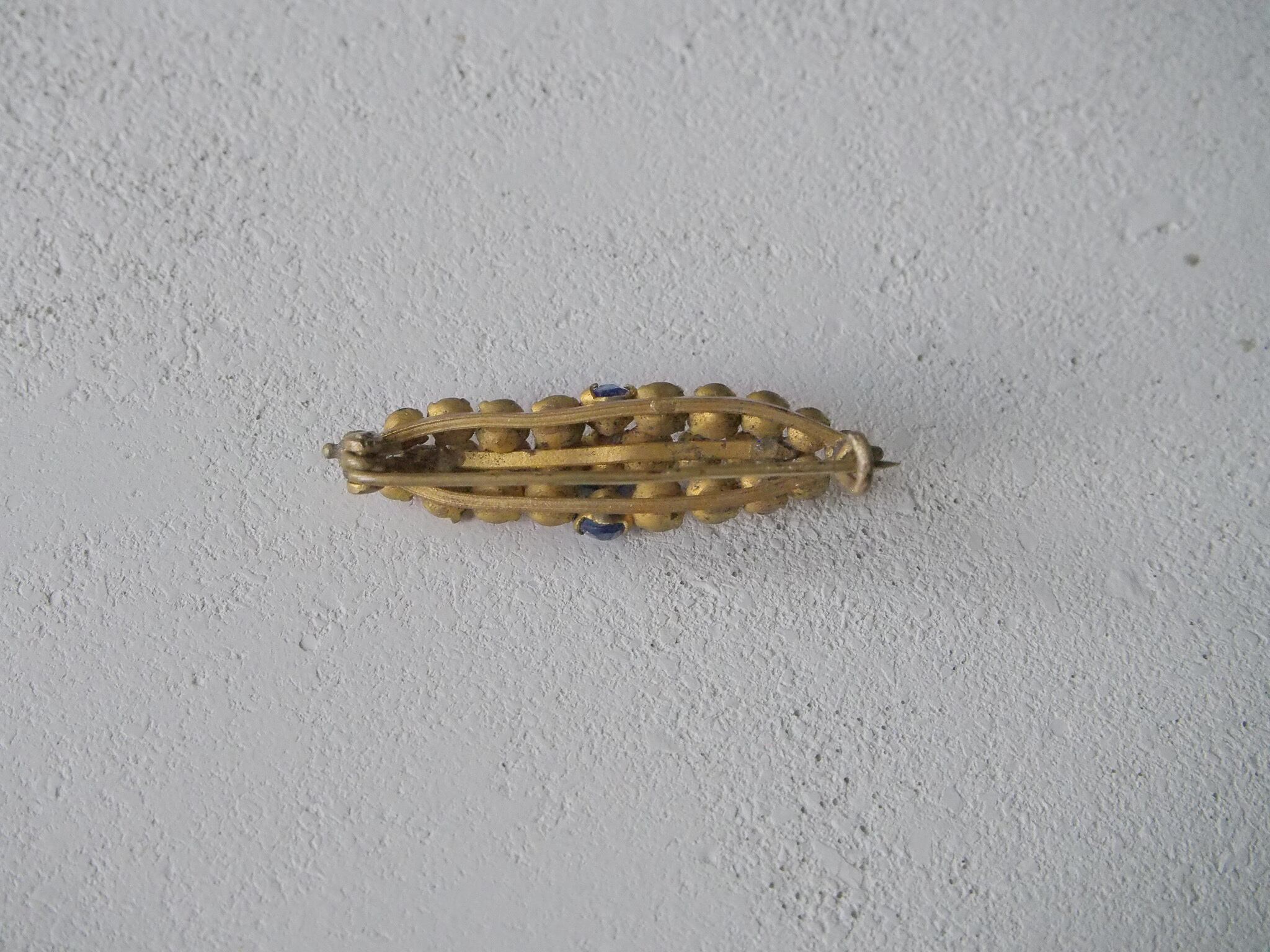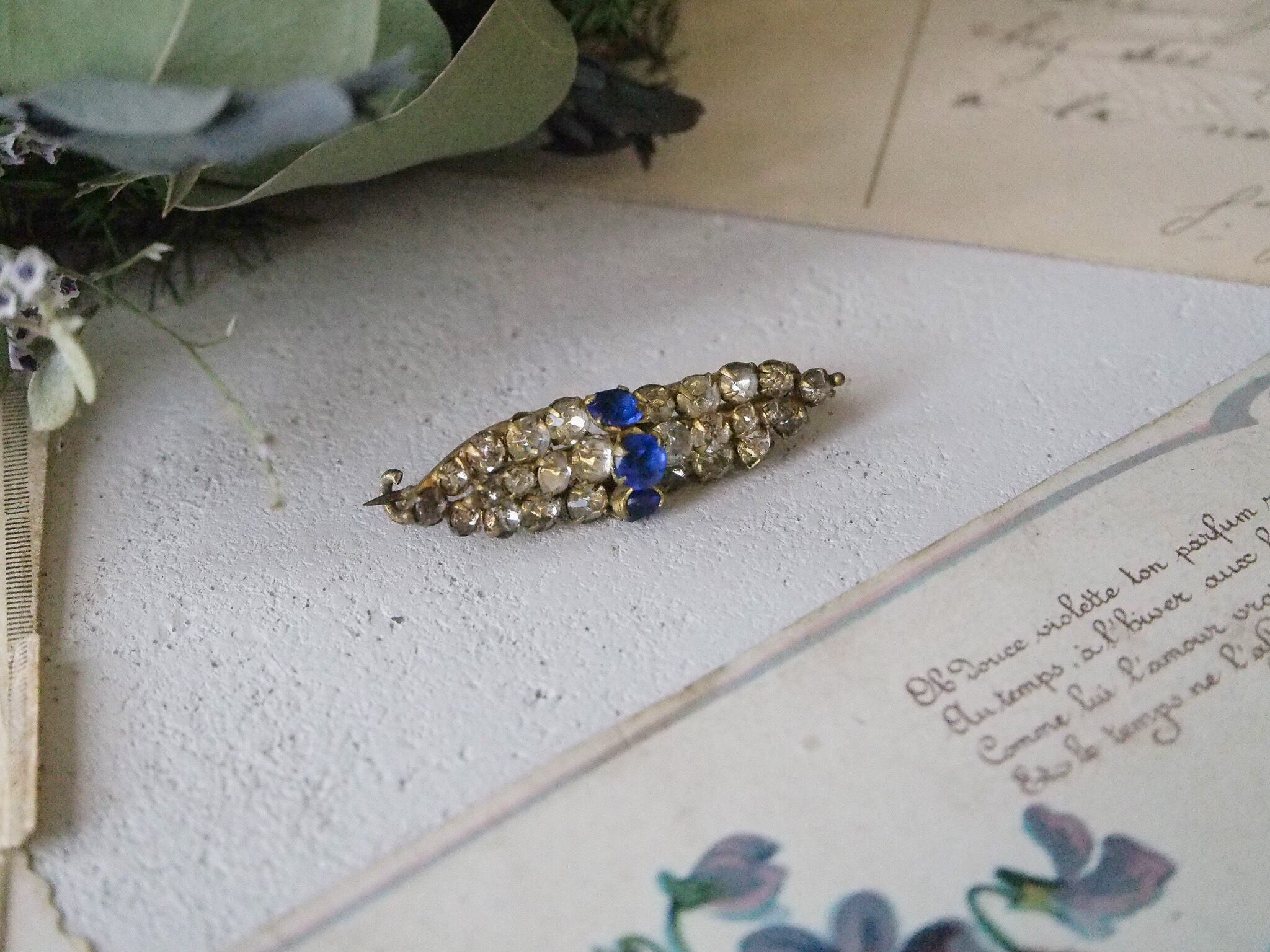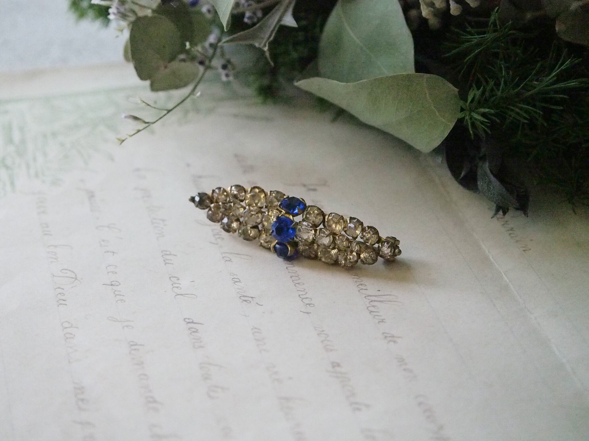 SOLD OUT 中央の青いガラスがアクセントのアンティークブローチです。