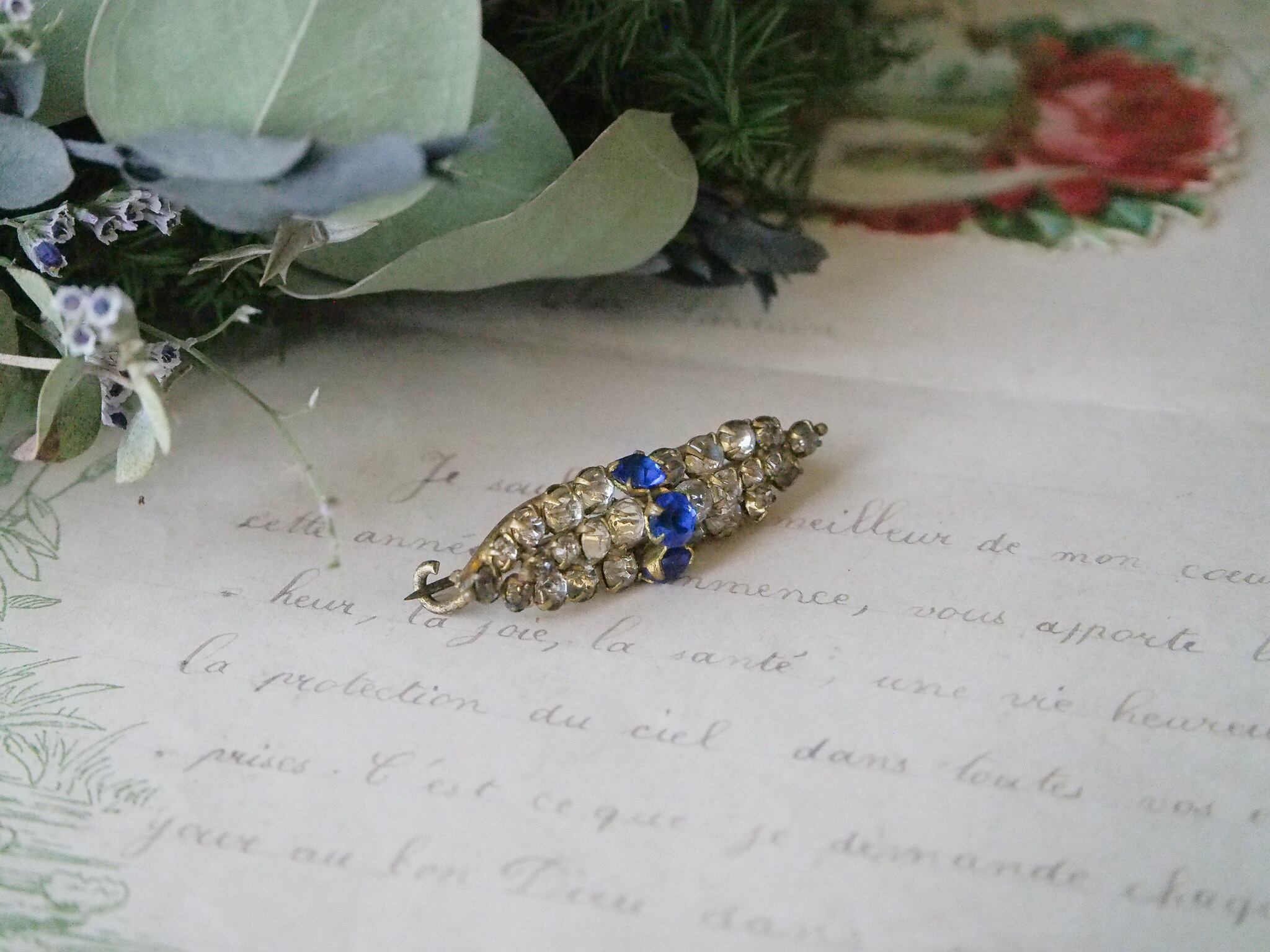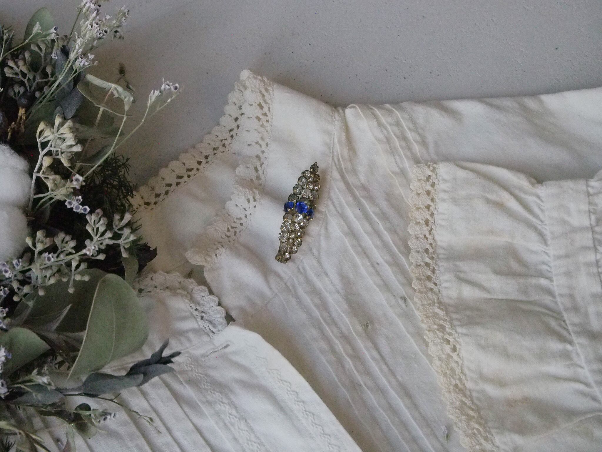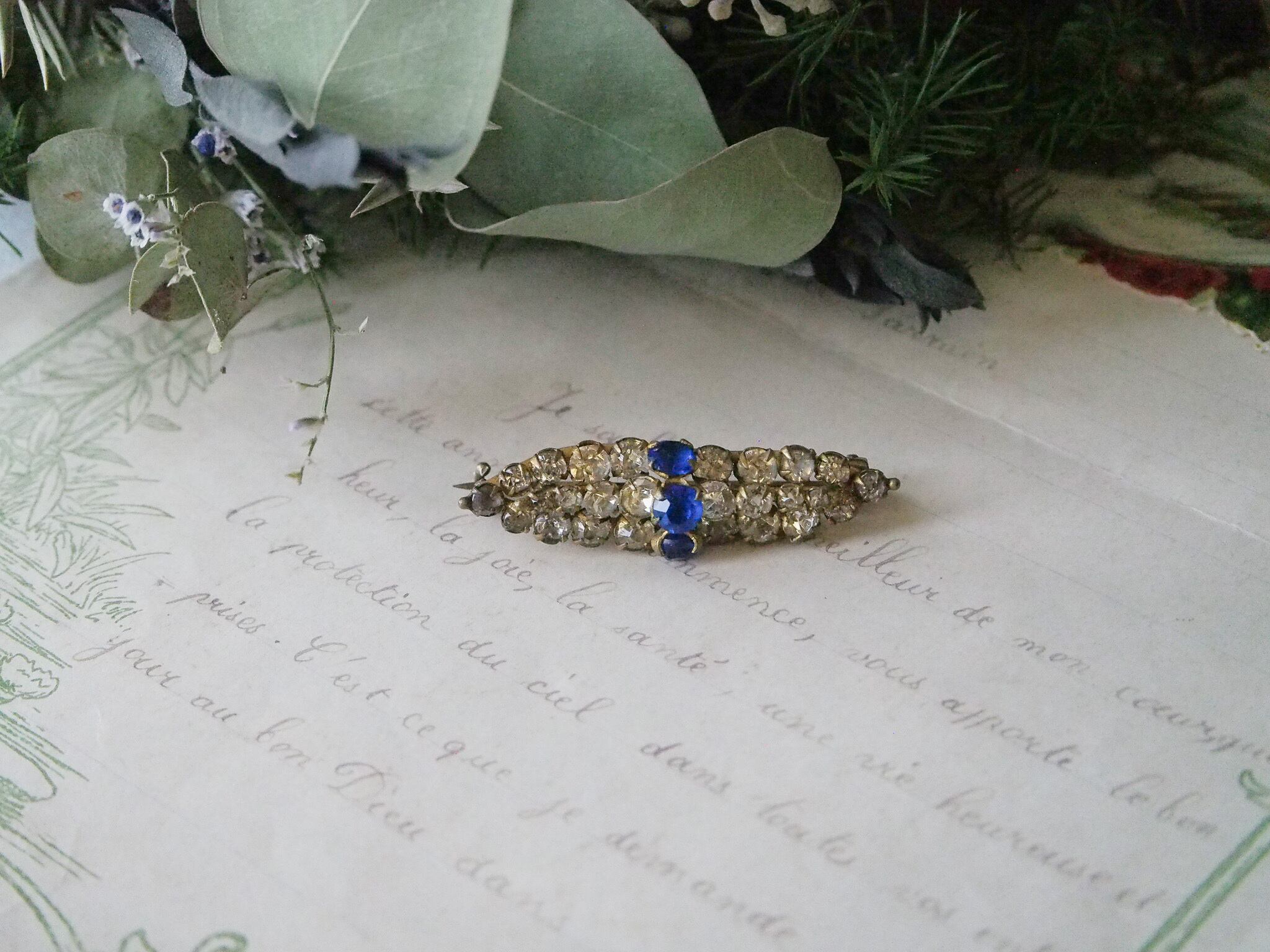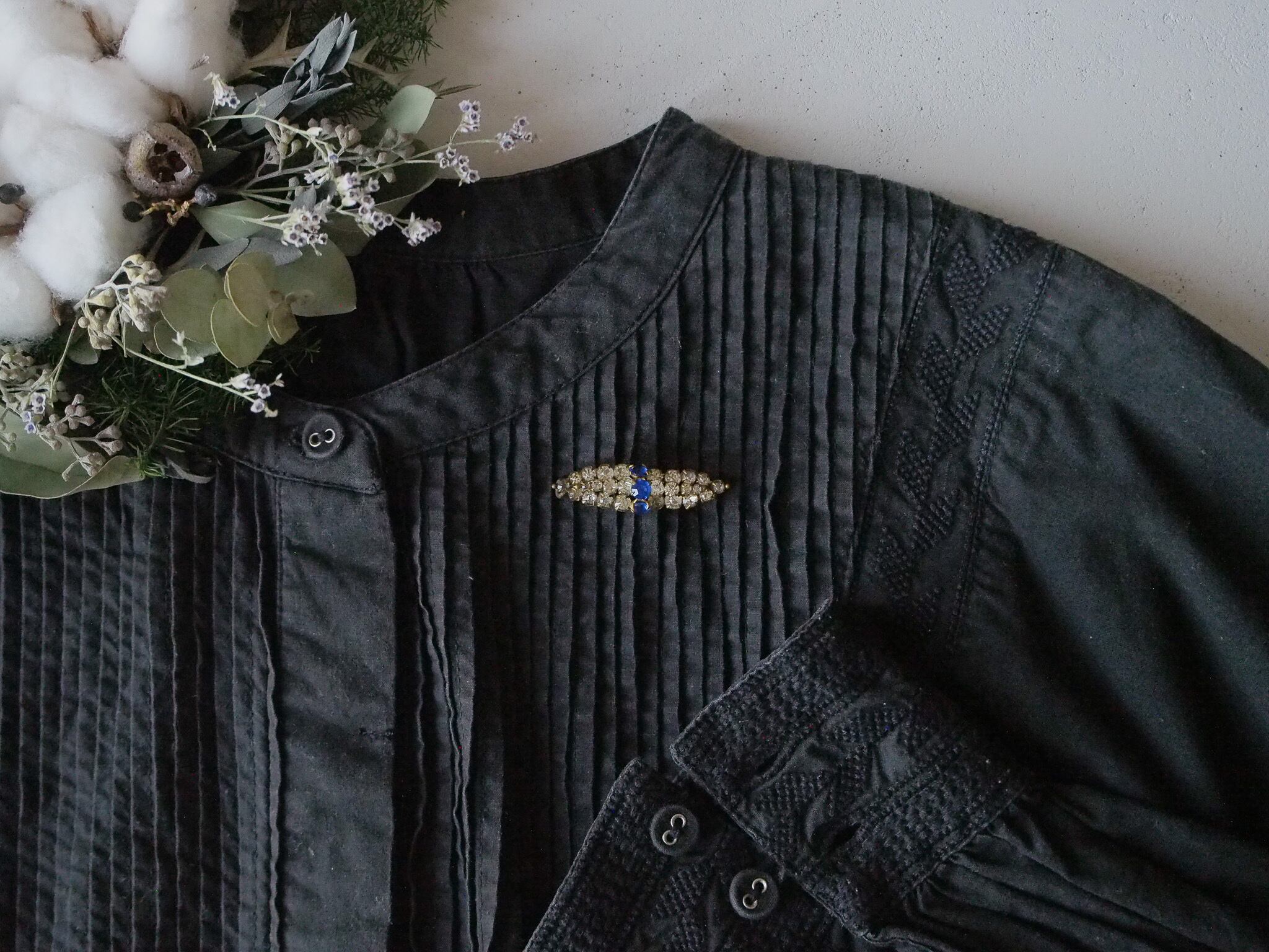 SOLD OUT 中央の青いガラスがアクセントのアンティークブローチです。